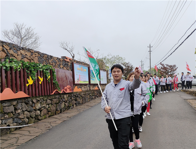 此次活動, 在注塑車間主管臧周峰的帶領(lǐng)下,來到許家山,所有隊員分成6組,列隊前往活動地點(diǎn)。