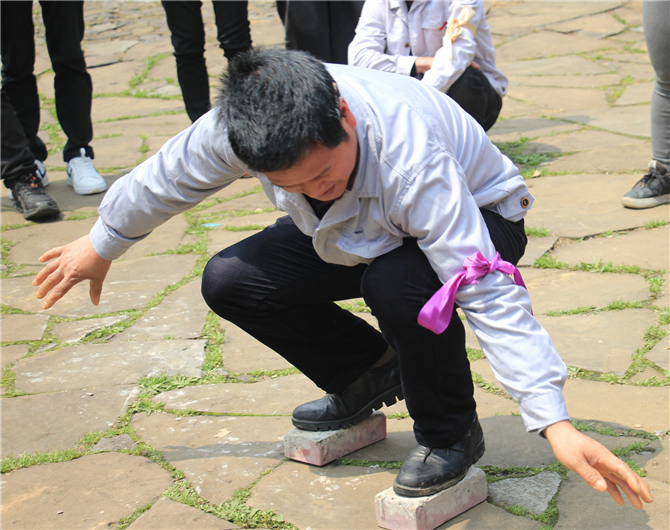 (摸石頭過河)賽長約6米,各隊通過“石頭”交替前移過河,根據(jù)各隊的用時長短依次排名。